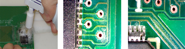 If you are a contract manufacturer of PCB’s, the visual appearance of the board reflects on your work. A clear, greasy-looking residue around a solder joint may raise flags for your customer’s incoming QC inspectors. If the flux residue chars and forms spots on the solder joints it may look like a true defect like a solder joint void or “blow hole”. If the flux residue is from a rework process, it acts as a fault tag in the rework area calling attention to the work even if there shouldn’t be a concern.